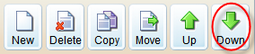 5. Your new page has been appended to the Products page. Now use the Down button at the document action toolbar to move it to the bottom of the section.