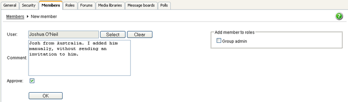 Approve - if checked, the user will be automatically approved; if not, user will need group admin's approval before she becomes member of the group