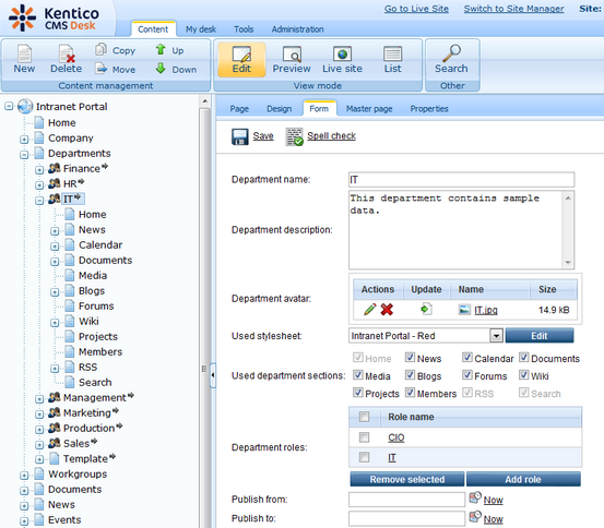 A comprehensive overview of the section's functionality and features can be found in Intranet User's Guide -> Departments, so please refer to it if you are looking for further information on how the section can be used on the live site.
