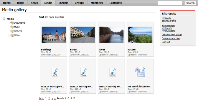 3. As we mentioned above, groups can also have their own media libraries. This is the case of the Czech Republic fans group on this sample site. If you go to Groups -> Czech Republic fans and click the Media link in the Group links box, media libraries of the group will be displayed.