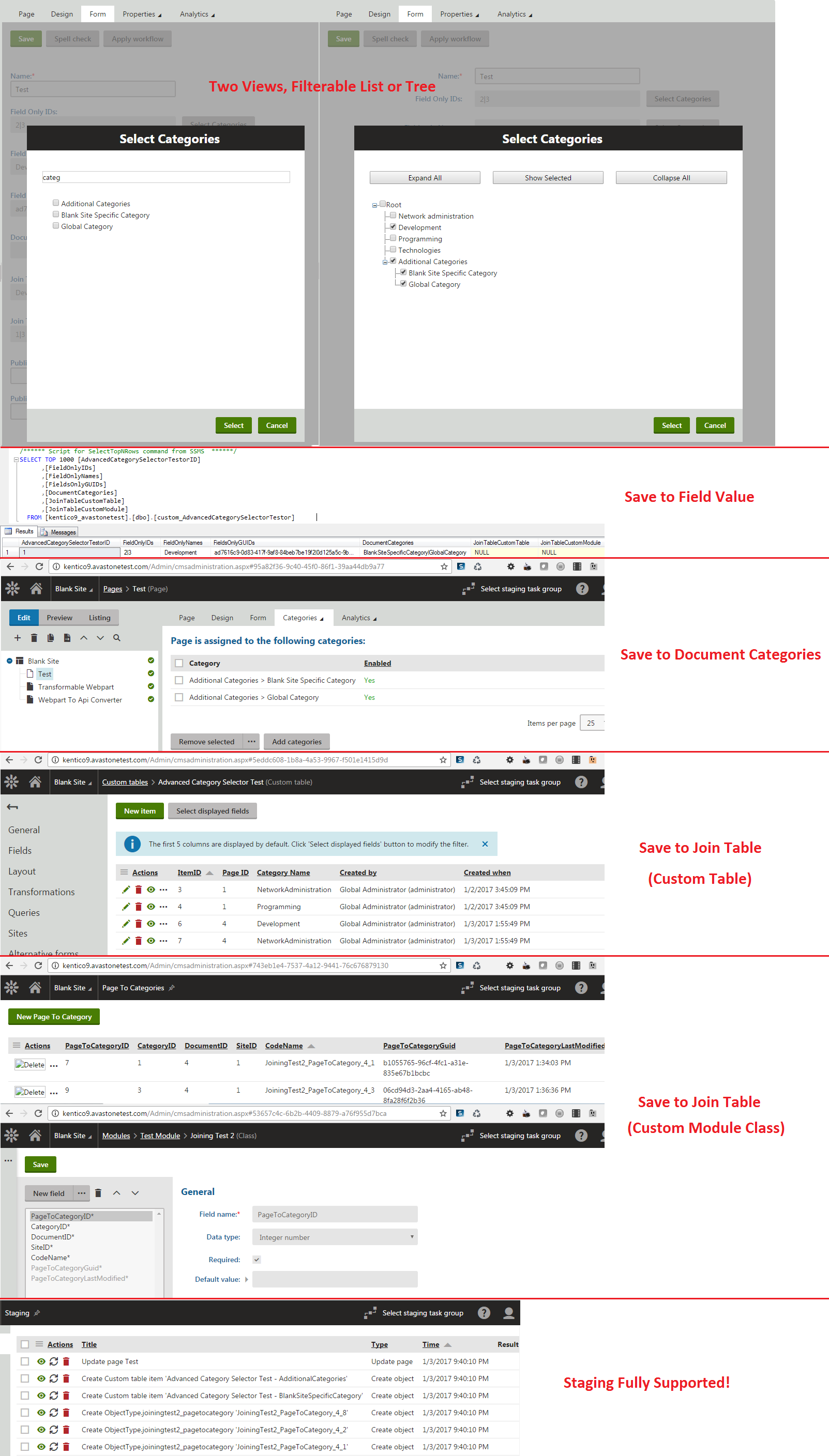 The Advanced Category Selector offers the following flexibility/configuration: