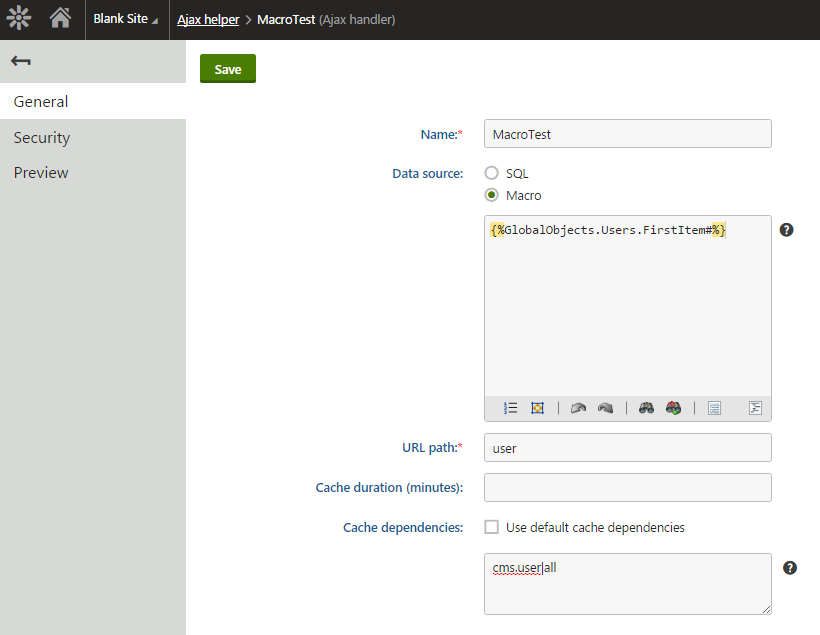 Occasionally in JavaScript you will want to access data stored within the Kentico database. Using our JavaScript web part you can insert macros into inline JavaScript, but this isn’t possible for physical files. This module provides a method to create URLs that can be used to easily request data from a SQL or macro data source within your JavaScript files.