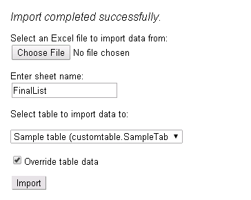 It is rare case that someone would like to populate custom table data manually, especially if there is a huge amount of it. This web part comes to solve this problem. This flexible feature allows user to import data from Excel document to a custom table available in your application. It automatically maps Excel columns to custom table fields.